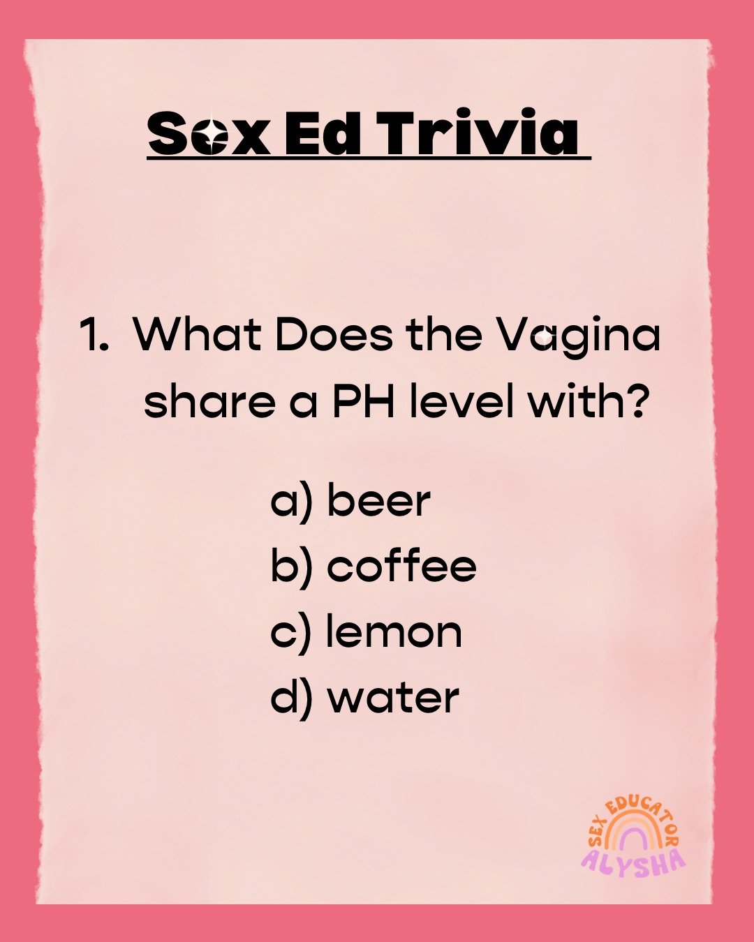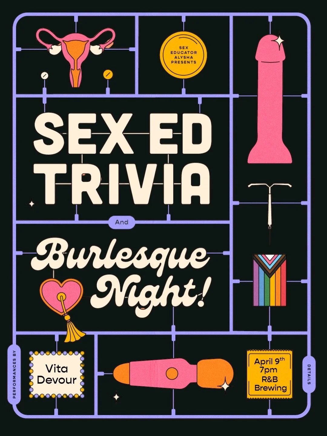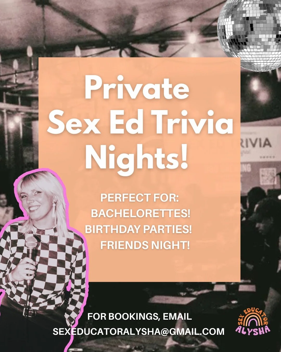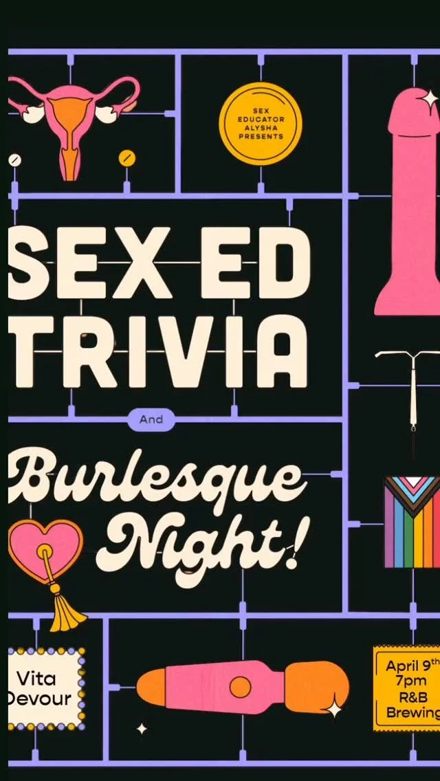 Hi, I’m Alysha Somerton! I’m a Queer Sexual Health Educator and Sex and Intimacy Coach based in Vancouver, BC. I create inclusive, pleasure-based spaces for learning about sex, relationships, and intimacy, whether that’s in a classroom, a coaching session, or at one of my flirty, fun sex ed trivia nights.